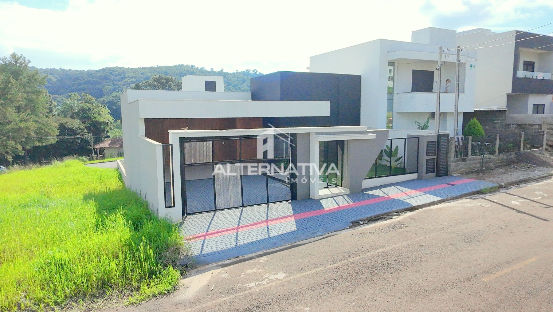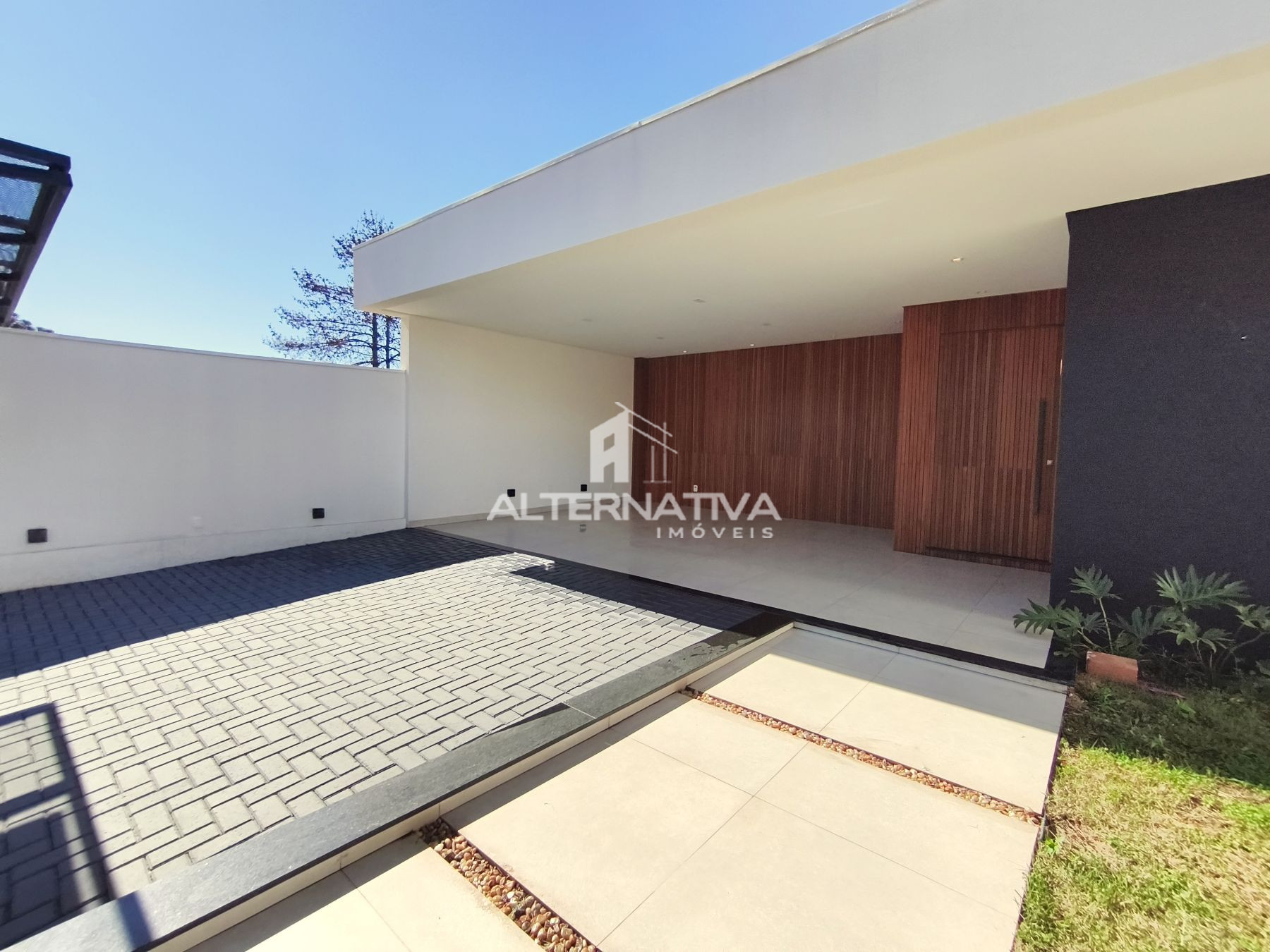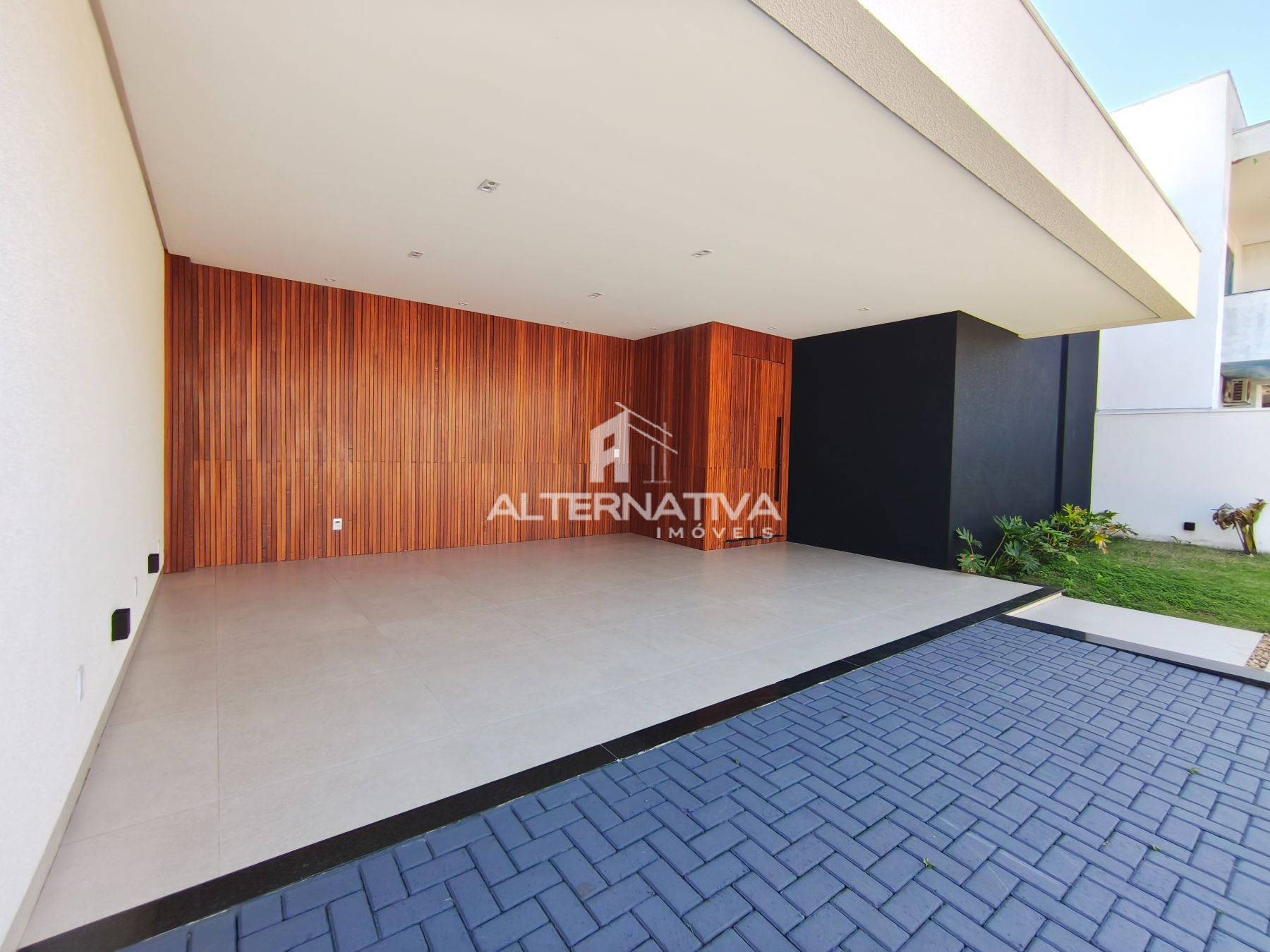 - Fachada contemporânea com detalhe ripado